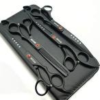 7.0インチチタンブラックプロフェッショナルペットグルーミングはさみセット、ストレート&シンニング&湾曲ハサミ4個セット犬のグルーミング用 (ブラック)