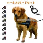 犬用 ハーネス リード 2点セット サイズ調整可 大型犬 中型犬 小型犬 反射素材 リフレクター付き 衝撃緩和 負担軽減 通気性 丈夫 頑丈 かっこいい