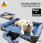 ペット用ベッド スクエアカドラー 寝床 ソファー 4点セット シーツ 毛布 骨型枕 犬 イヌ 猫 ネコ 通年用 室内用 大型商品 角型 長方形 寝具