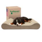 【並行輸入品】 FurHaven XXL 低反発素材 犬用ベッド ツートンカラー フェイクファー&スエード L字型長椅子 取り外し可能な洗えるカバ