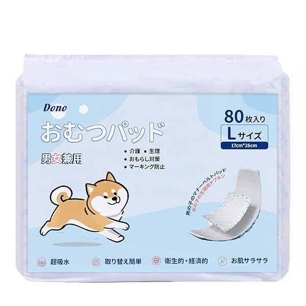 犬おむつパッド マナーベルトや洗えるパンツと一緒に使用のマナーパッド ペット用おしっこ吸収おむつウェア もれない 使い捨て犬用マナーパッド 超吸収 女の子や男の子兼用おむつパッド 介護 おもらし マーキング防止などに使えるペット用オムツLサイズ80枚
