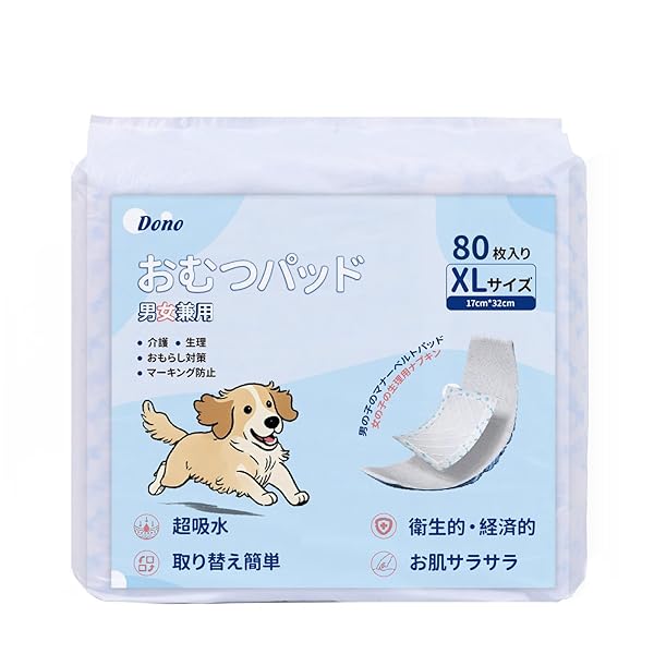 犬おむつパッド マナーベルトや洗えるパンツと一緒に使用のマナーパッド ペット用おしっこ吸収おむつウェア もれない 使い捨て犬用マナーパッド 超吸収 女の子や男の子兼用おむつパッド 介護 おもらし マーキング防止などに使えるペット用オムツXLサイズ80