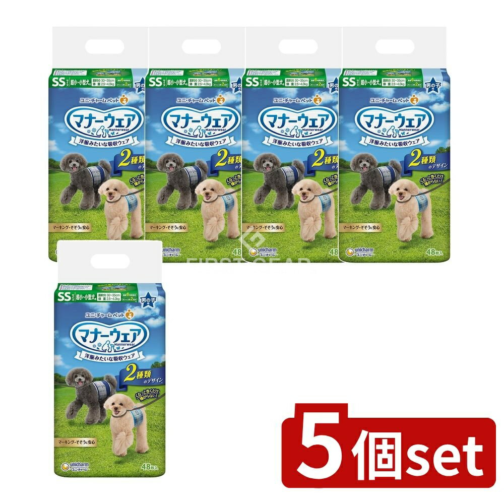 \レビュー特典有/【5個セット】 ユニ・チャーム マナーウェア男の子用SS青 [単品内容量/48枚] | マナーウェア 犬用 おむつ 男の子用 ユニチャーム 青チェック 紺チェック ペット おむつ トイレシート ペット用品 介護用 ペットシーツ 旅行用 デザイン