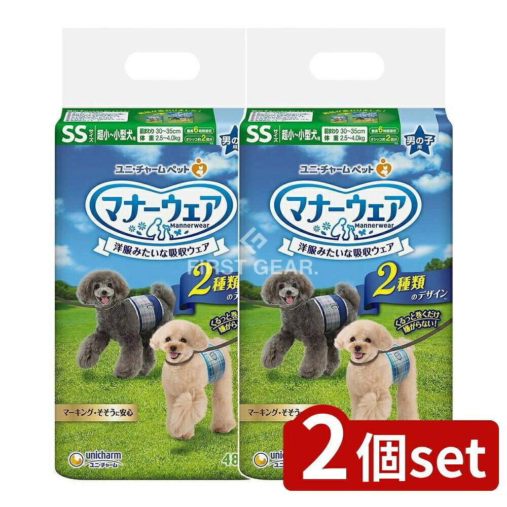 \レビュー特典有/【2個セット】 ユニ・チャーム マナーウェア男の子用SS青 [単品内容量/48枚] | マナーウェア 犬用 おむつ 男の子用 ユニチャーム 青チェック 紺チェック ペット おむつ トイレシート ペット用品 介護用 ペットシーツ 旅行用 デザイン
