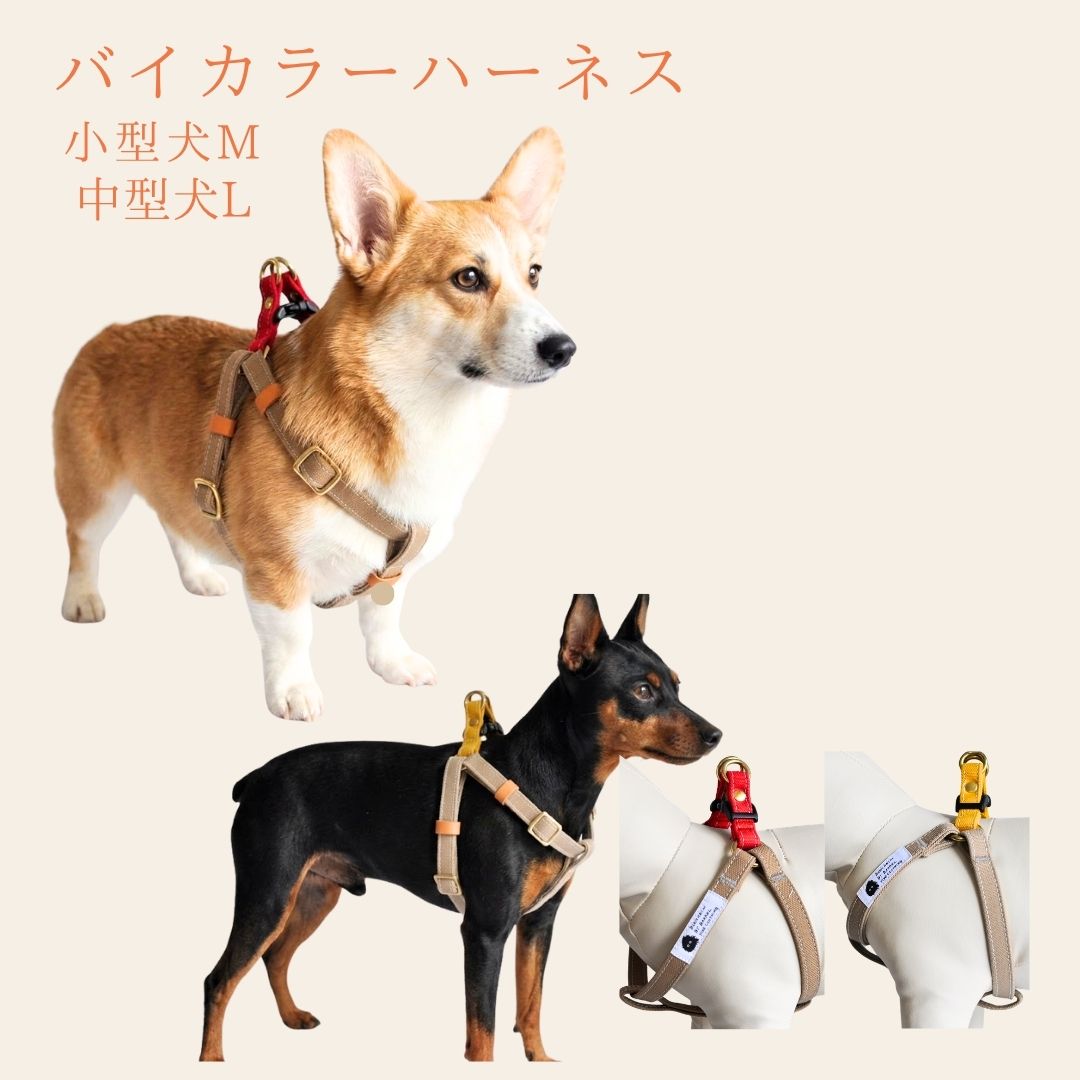 ハーネス 犬 胴輪 小型犬 中型犬 丈夫 頑丈 犬のハーネス 犬用ハーネス 首に優しい 抜けにくい M L レッド×ベージュ マスタード×ベージュ おしゃれ 倉敷帆布 犬用胴輪 日本製 安心 安全 高品質 手洗い プレゼント 誕生日