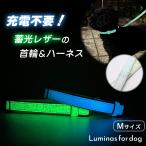 Luminas 蓄光レザー 犬用首輪&ハーネス Mサイズ fordog いぬ 光る カラー リードセット 小型犬 中型犬 花布柄 おしゃれ かわいい シンプル 災害 アウトドア 優しい 柔らかい ブルー グリーン スミナス マルヨシ 蛍光 送料無料