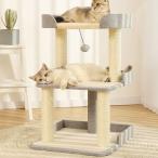 キャットタワー 据え置き 猫タワー安定性抜群 猫ハウス 天然サイザル麻 爪とぎポール おもちゃ 多頭飼い ふわふわ 組立簡単 ベージュ