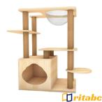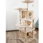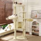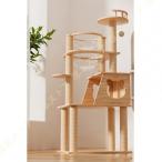 キャットタワー&ペットベッド 高さ156cm 据え置き 木製 天然木 猫 子猫 大型猫 多頭飼い ペット用 猫タワー 猫ベッド 段階 おもちゃ 遊び場 シンプル