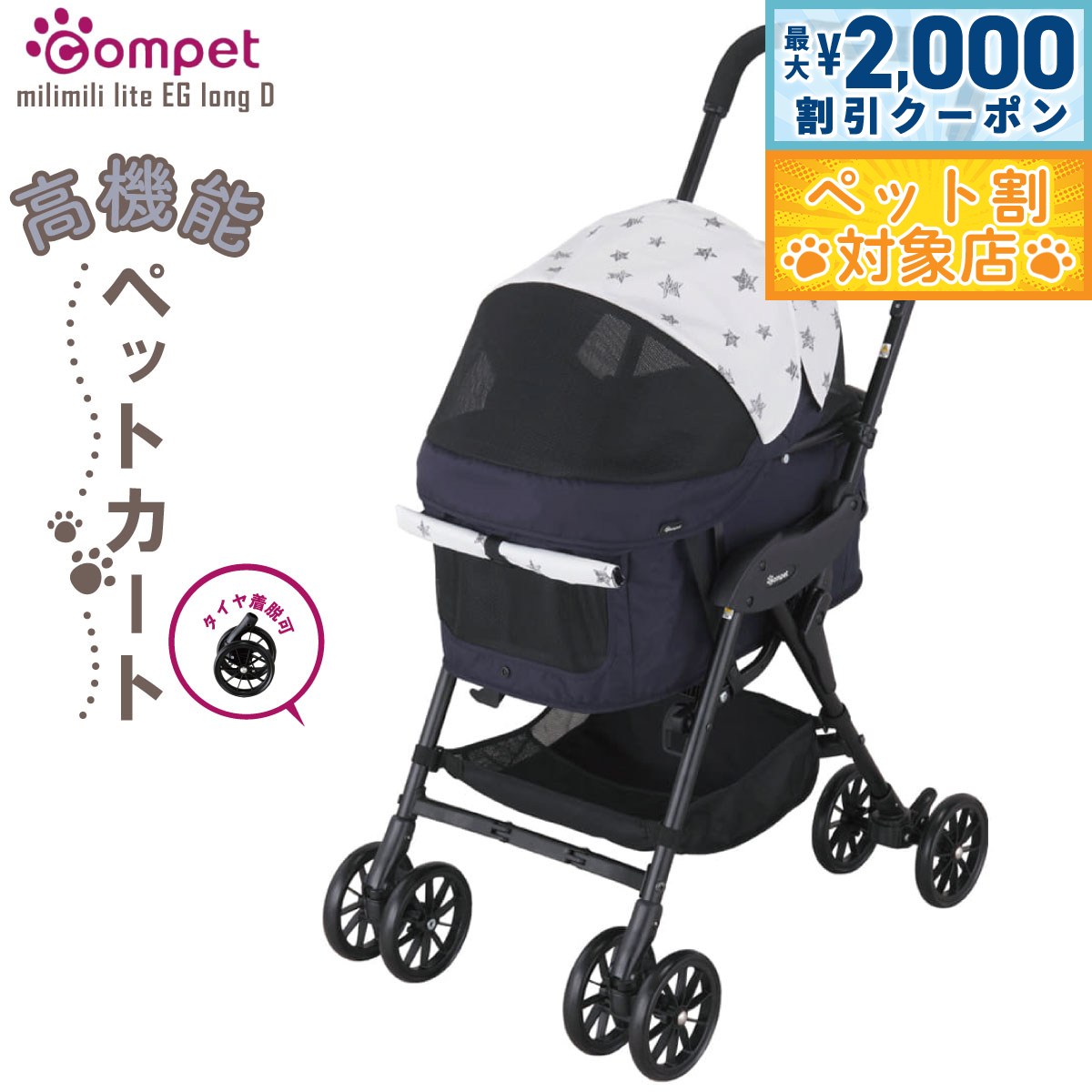 【2個で4%off★SALE】コムペット ミリミリライト アルファ EG ロング D ネイビー compet milimili コンビcombi 小型犬 猫 ネコ ねこキャリーバッグ キャリーカート ペットバギー ペットカート お出かけ お散歩グッズ おでかけ 犬用品 ペット用品 ラッピング不可