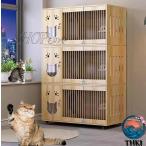 猫 ケージ キャットケージ 無垢材 ケージ 猫ケージ 木製 留守番 保護 多頭飼い 車輪付き 猫 ハウス ねこケージ ネコケージ キャスター付き コンパクト 大型 広い ステップ 上下運動 お手入れ簡単 組立必要 室内飼い 脱走防止