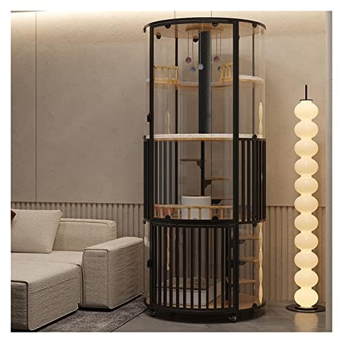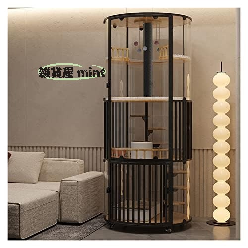 猫 ケージ 大型、猫ヴィラ、猫の家 パノラマキャットヴィラ360°キャットケージガラスキャットキャビネットキャットリタートイレ付きソリッドウッドキャットハウス ペットケージ、組み立て簡単、一人暮らしに最適、複数の猫に最適