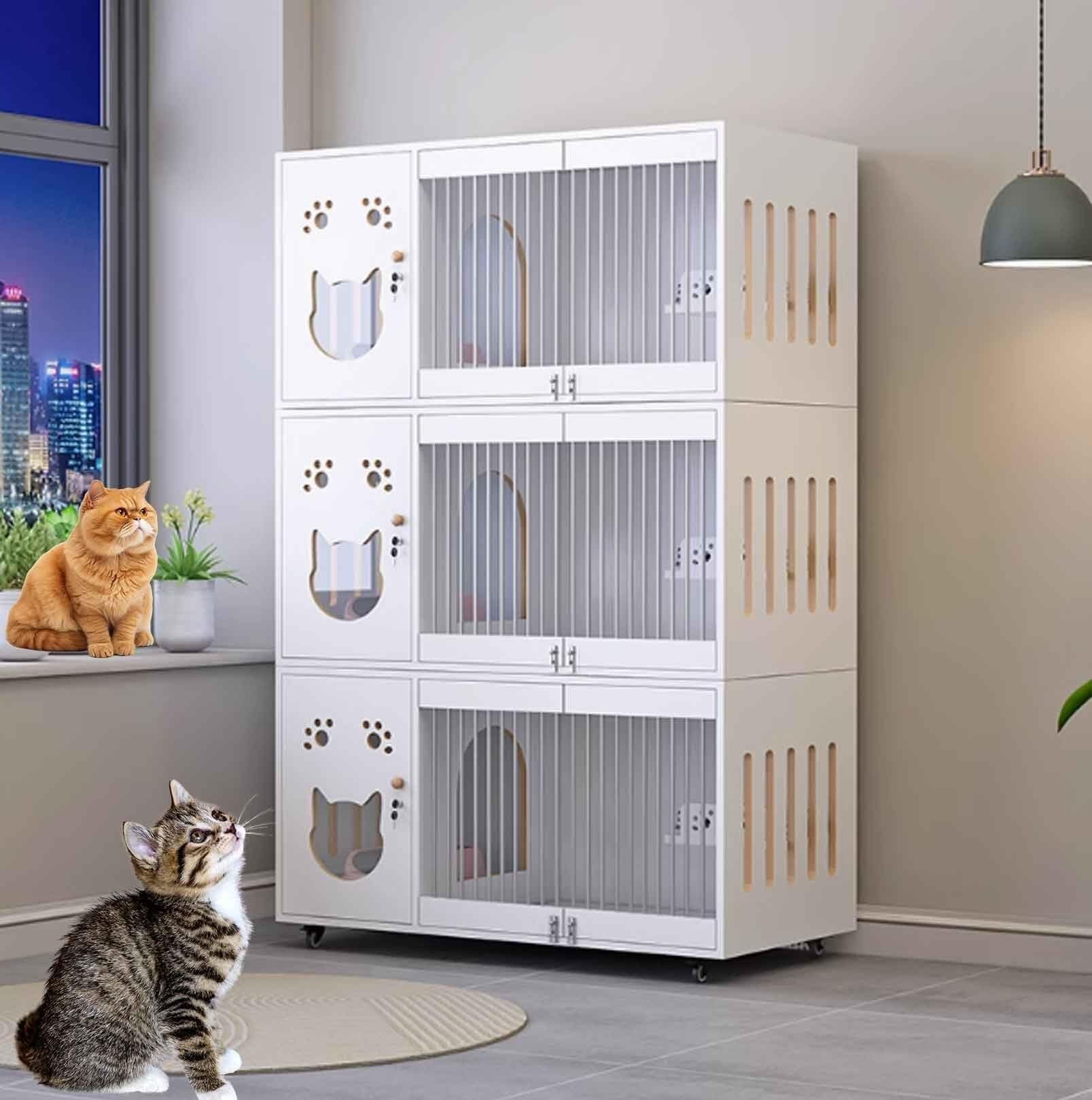 猫 ケージ 3段 木製 キャットケージ 大型 おしゃれ 透明ガラスドア キャスター 猫ゲージ 保護 脱走防止 留守番 組立簡単 S&L室内飼い幅60cm*奥行60cm*高さ120cm
