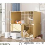 大型猫用ケージ トイレ一体型 2段式 折りたたみ式 DIY組立 室内用 猫ハウス 通気性良好 飛び散り防止
