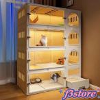 猫 ケージ キャットケージ 2/3段 木製 キャスター付き 棚板付き 広々 大型 高級感 おしゃれ キャットハウス C&J 留守番 保護 脱走防止 多頭飼い
