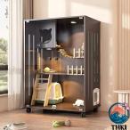 室内用猫のゲージ 大きめ動物ケージ 木製 子猫用ケージ 猫ハウス キャスター付き キャットケージ 多機能密閉式キャットハウス