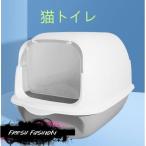 【20%OFFクーポン】猫トイレ 猫用トイレ ハーフカバー 専用スコップ付き 猫砂の飛び散り防止 ねこトイレ 大型猫 組み込み構造 手入れ簡単 掃除しやすい 大きい ネコ トイレ 大型猫 大きい コンパクト ホワイト