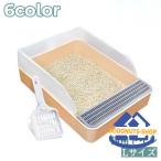 猫用トイレ スコップ付き シャベル付き L ネコトイレ キャットトイレ トイレ容器 猫砂入れ 猫 ネコ ねこ オープンタイプ ペット用品 猫用品 飛散
