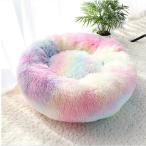 【並行輸入品】 心を落ち着かせる犬のベッド猫のベッド、洗える丸型の犬のベッド滑り止めふわふわのフェイクプラッシュドーナツカドラー猫のベッド小中大型