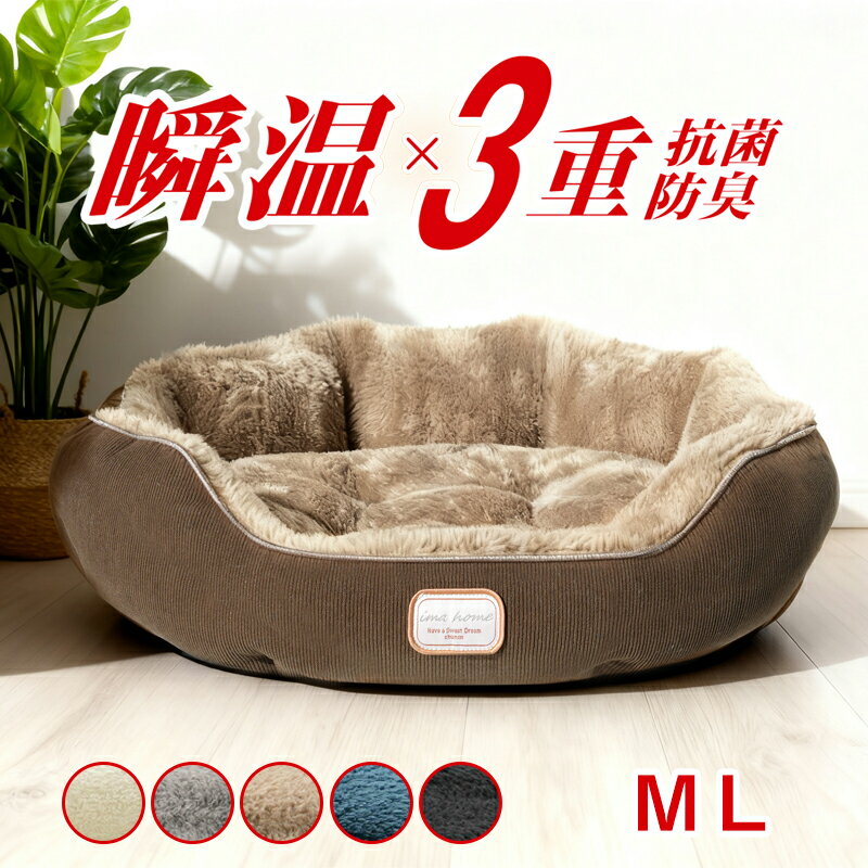 猫 ベッド ペットベッド 犬 冬 秋 マット カドラー 洗える ペット 暖かい おしゃれ 小型犬 中型犬 大型犬 もこもこ 多頭飼い 円形 エリッセタイプ Lサイズ