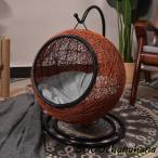 5%offクーポン 29日1:59迄◆ペットハンギングチェア 猫 ねこ ネコ ペット 猫用 ねこ用 ネコ家具 ねこ家具 ペット家具 吊り下げ式 クッション付き ベッド ドーム キャットハウス 猫用品 ラタン調 ブラウン ナチュラル リビング ゆらゆら 丸型 ルアナ