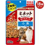 [18個セット]ミネット 2種類のトッピング まぐろチップ&小魚添え 220g 成猫用 子猫用 高齢猫用 全猫種用 キャットフード ドライフード 国産 MINETTE スマック