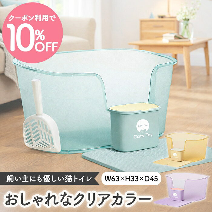 \クーポン10%OFF マラソン限定/【Cats Toy公式】猫トイレ 大型 63cm クリアカラー 専用ダストBOX マット付き グリーン パープル オレンジ 猫 トイレ 大きめ おしゃれ 消臭 飛び散り防止 飛び散りにくい 掃除 簡単 多頭飼い インテリア シンプル 本体