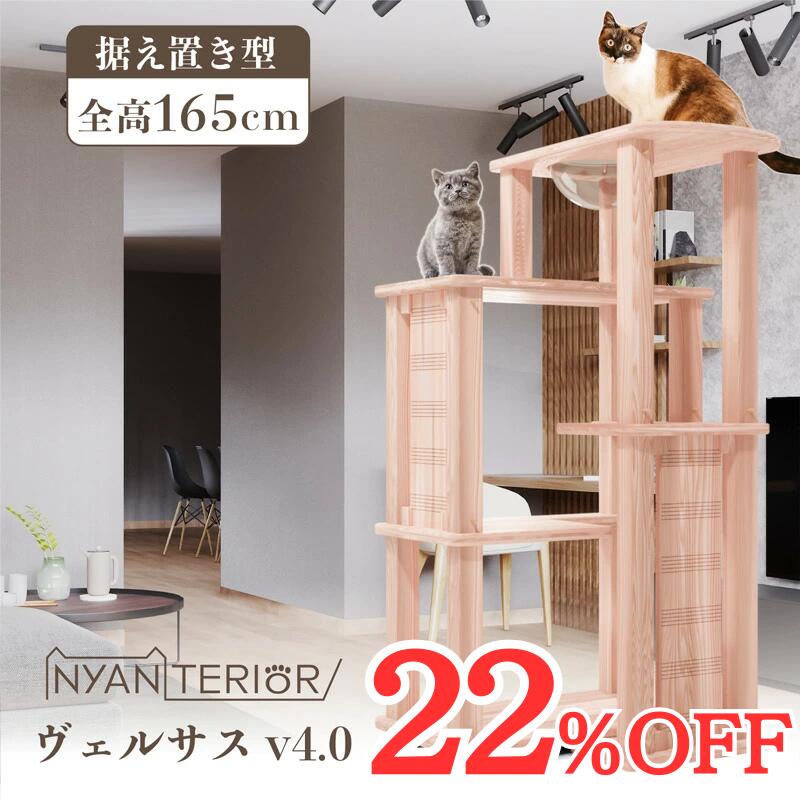 TBSねこ自慢で紹介 キャットタワー ニャンテリア【ヴェルサス 4段モデル】全高164cm 大型猫 天然木製 天日乾燥杉 最適pHバランス 森林浴 健康予防 フィトンチッド 消臭 抗菌 多頭飼い 爪とぎ 木登り 杉にゃん 高強度 人が乗れる 高耐久 一生使える