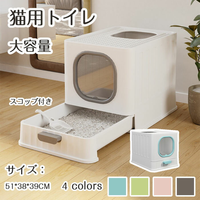 「10%OFFクーポン 14日までに」猫トイレ 猫用トイレ本体 ネコトイレ フルカバー 大容量 大型 砂の飛び散ら防止 掃除簡単 脱臭抗菌 組立簡単 引き出し式 おしゃれ 清潔 猫用品 尿や砂 優れた耐久性