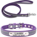 【並行輸入品】 可愛いおしゃれ極細繊維製猫犬の首輪とリードセットおなまえ首輪彫刻プレート付手仕上げ反射首輪小中大型猫犬