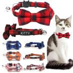 パーソナライズされた猫の首輪名 ID ちょう結び安全離脱蝶ネクタイバックルチェック柄チワワネックレス弾性調節可能な犬の首輪