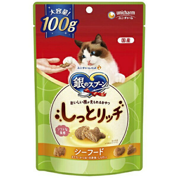 【3個セット】 ユニチャーム 銀のスプーン おいしい顔が見られるおやつ しっとりシーフード& チキン 50g 副食 成猫 間食 日本製 ユニ・チャーム unicharm キャットフード 猫用おやつ おやつ スナック 全ステージ 国産 しっとり シーフード ソフト 猫用 安心素材
