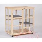 猫ケージ キャットケージ 木製 キャスター付き KNK(株) 天窓付き ロック可 猫穴付き 棚板付き 広々 大型 四方換気 杉天然木 猫家具
