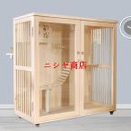 猫 ケージ キャットケージ 無垢材 大型 ワイド ケージ 猫ケージ 木製 留守番 保護 多頭飼い 猫 ハウス ねこケージ ネコケージ コンパクト 大型 広い ステップ 上下運動 良好な視界 猫の本能を満たす 自在車輪付き 猫用ケージ お手入れ簡単 組立簡