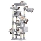 Heyblyキャットタワー 多頭飼い最適 高180cm 大型猫用 据え置き式 高安定性 ダブル展望台付き ダブル猫小屋付き 3 つ吊りベッド付き コン