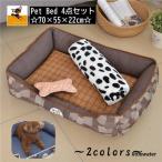 ペット用ベッド スクエアカドラー 寝床 ソファー 4点セット シーツ 毛布 骨型枕 犬 イヌ 猫 ネコ 通年用 室内用 大型商品 角型 長方形 寝具