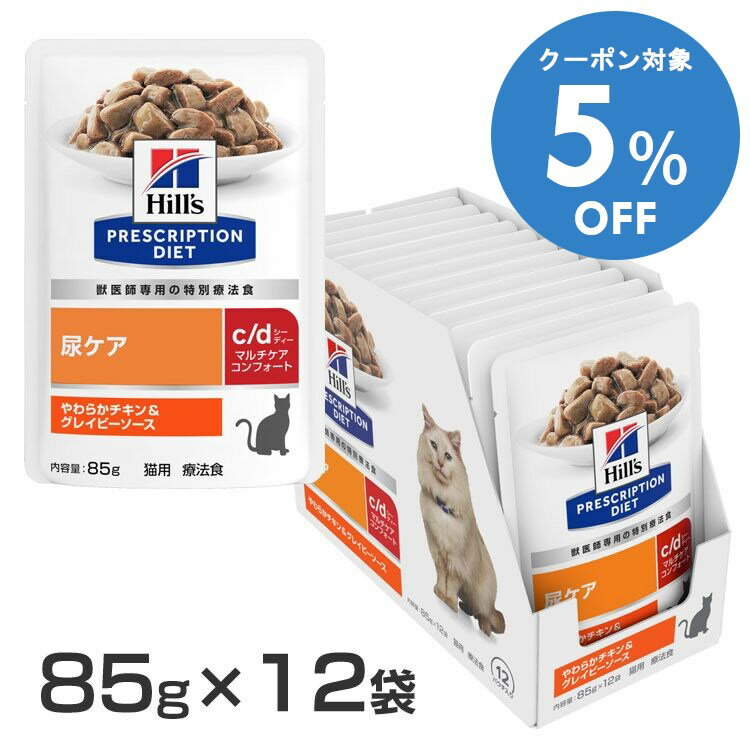 【5%OFFクーポン■2/10〜2/23迄】猫用 療法食 ヒルズ 尿ケア パウチ c/dマルチケアコンフォート やわらかチキン&グレイビーソース 85g×12袋 キャットフード ウェットフード 食事療法 プリスクリプション・ダイエット 鶏 下部尿路 特別療法 シニア アダルト