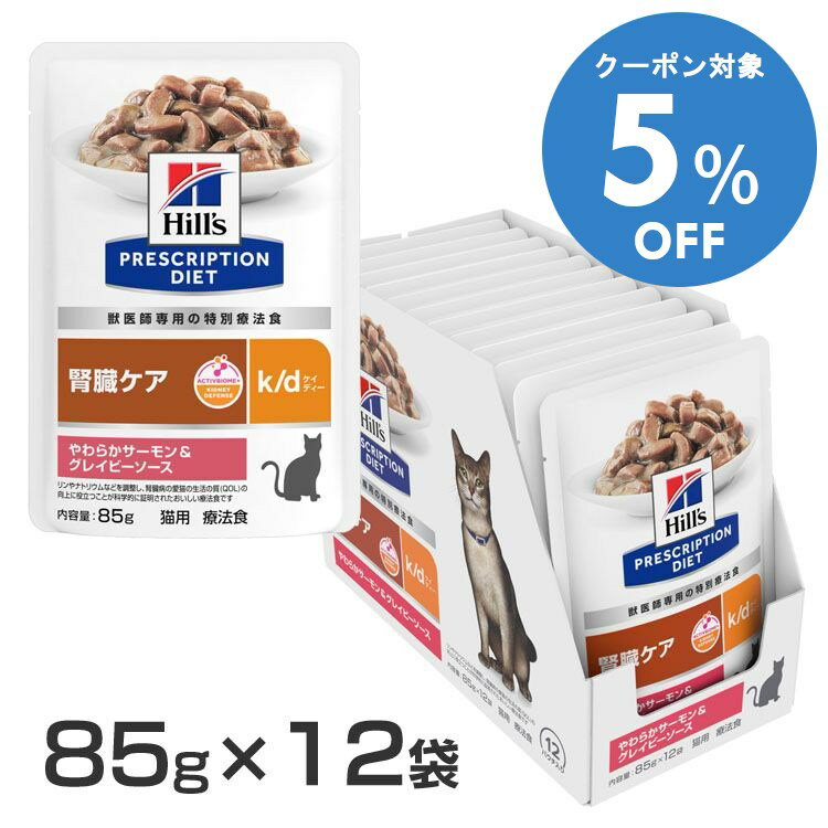 【5%OFFクーポン■2/10〜2/23迄】猫用 療法食 ヒルズ 腎臓ケア パウチ k/d やわらかサーモン&グレイビーソース 85g×12 キャットフード ウェットフード 食事療法 プリスクリプション・ダイエット 鮭 シニア アダルト 特別療法 腎ケア 腎機能 リン ナトリウム