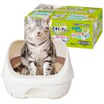 猫 トイレ システムトイレ本体 デオトイレ ハーフカバー本体セット 成猫用 ネコトイレ オシャレ ナチュラルアイボリー ユニチャーム