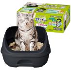 猫 トイレ システムトイレ本体 デオトイレ ハーフカバー本体セット 成猫用 ネコトイレ オシャレ ダークグレー ユニチャーム