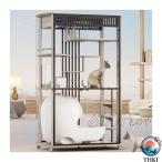 猫 ケージ 大型 猫ヴィラ 猫の家 パノラマキャットヴィラ 360° キャットケージガラスキャットキャビネットキャットリタートイレ付き