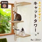 日本製 キャットタワー 窓枠取付 ねこゴロン ブラウン 省スペース スリム 多頭飼い 送料無料 CT-KMY2