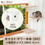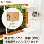 【セット商品】キャットタワー本体(ブラウン)+ボックス(ホワイト) 【ねこゴロン】猫 ネコ おしゃれ 北欧 ペット 省スペース スリム 送料無料
