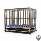 ペットケージ ステンレス 長方形 ダブルドア トレー マット 給餌器付き 脱走防止 犬小屋 犬用ケージ 組立簡単 頑丈 ペット用品 室内 室外 (中型犬用(幅110奥行72