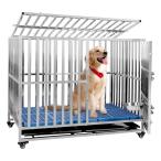 Xverycan 大型犬 ケージ ステンレス鋼製 折りたたみ式 耐荷重250kg ダブルドア/トレー/マット/給餌器付き 脱走防止 キャスタ
