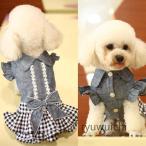 ペット服 お散歩 お出かけ デニムスカート デニム ドッグウェア 犬服 ワンピース ペットウェア つなぎ おしゃれ カバーオール 犬用スカート ワンちゃん服