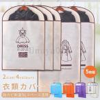 洋服カバー 5枚組 不織布 衣類カバー 防水 防虫 防塵 防湿 スーツカバー 衣装カバー 半透明式 ファスナー付け 型崩れ防止 透明窓付き 底までカバー