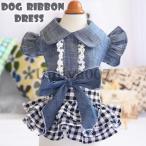 犬服 犬 服 ワンピース デニム 春夏 小型犬 前開き ソフトデニム風 ワンピース チェック ドッグウエア XS S M L XL おしゃれ 洋服 可愛い