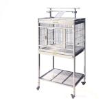 中型用ステンレス鳥ケージ 80×60×175cm KNK(株) 二段トレー えさ入れ付き キャスター回転ホイール スタンド付き 運動・遊びに最適