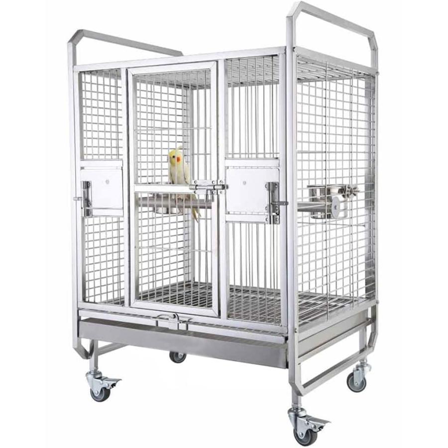 80*60*175cm 中型 ステンレス鋼 鳥かご ダブルトレイ、スタンド、給餌ボウル、回転ホイール付き あらゆる種類の中型のオウムに適しています 食事、遊び、運動
