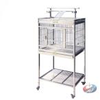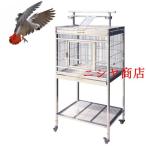 中型用ステンレス鳥ケージ 80×60×175cm KNK(株) 二段トレー えさ入れ付き キャスター回転ホイール スタンド付き 運動・遊びに最適
